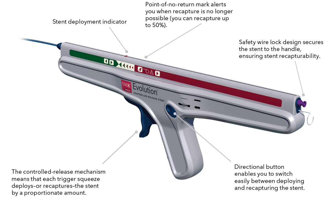 Evolution gives you the ability to deliver stents with more control and less stress. Now, no matter where you are stenting in the GI tract, you can focus even more on patient outcomes.