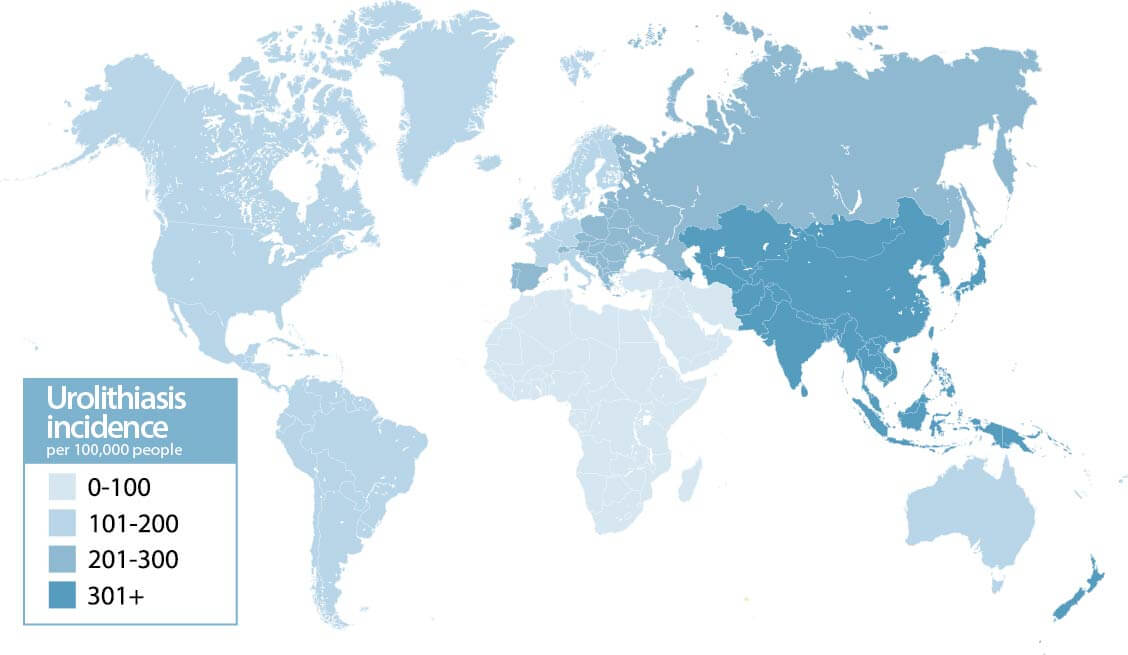 The more developed countries and regions are often equipped to treat this growing number of cases. However, the procedures to treat stone disease may not be as readily available in certain parts of the world where kidney stones are prevalent.